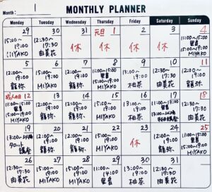 1月のサロンスケジュール